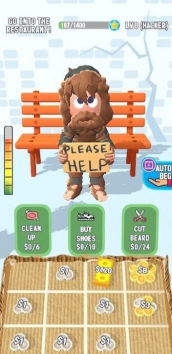 1、自由定制角色外表:利用乞讨所得的钱购买不同的服装和外观,改变你的形象,提升乞讨成功率并被更多人接受。