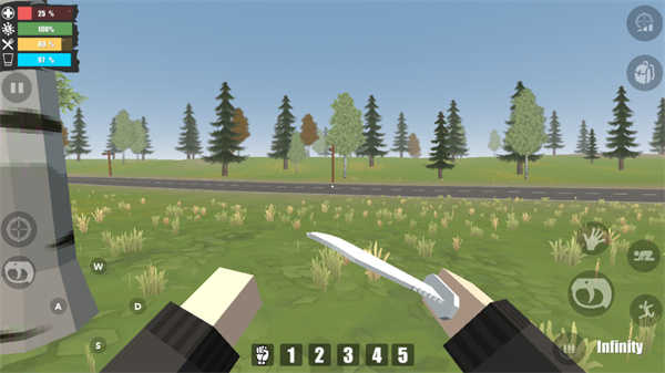 具有生存要素,需要收集武器和食物,保持足够的体力和生命值。