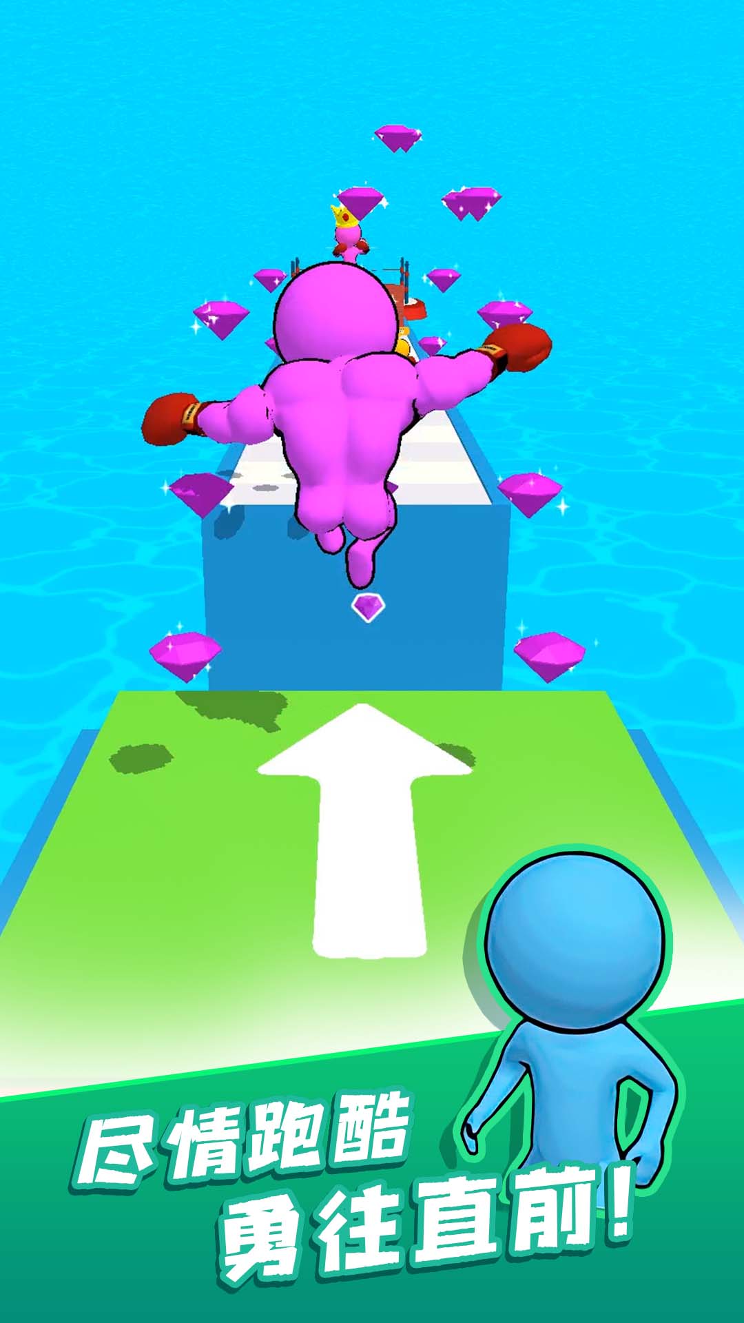 2、与其他玩家PK,争夺第一名的位置,不仅需要跑酷到终点,还要考虑其他玩家的速度;