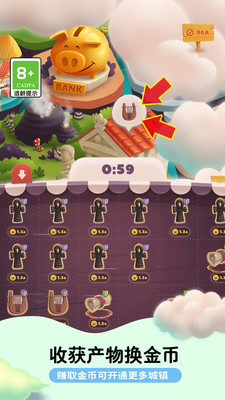 1、通过合成的形式,建造王国小镇吧,游戏的规则简单,上手难度不大的哦。