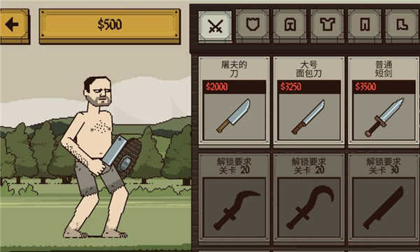2、点击中间的开始战斗即可开始游戏,上方从左到右依次为训练场、武器、人物。