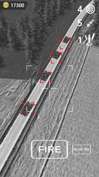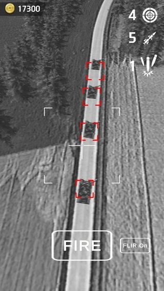 1、无人机在高空定位并锁定目标,你可以进行各种精彩的射击操作,完成战斗。