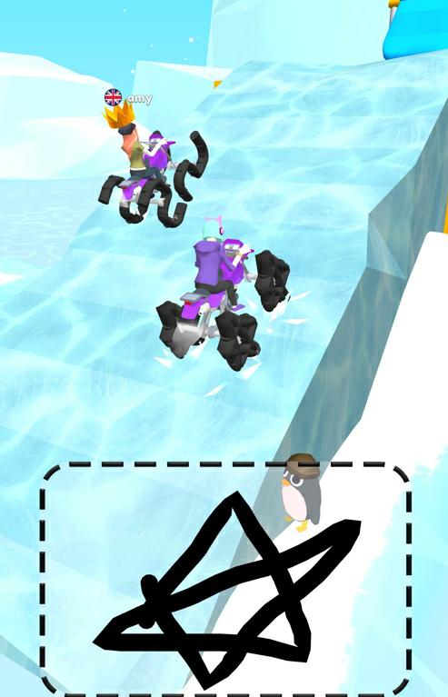 2、不断在画板上画出你的轮子,突破障碍,向前冲刺。