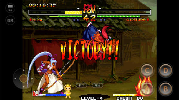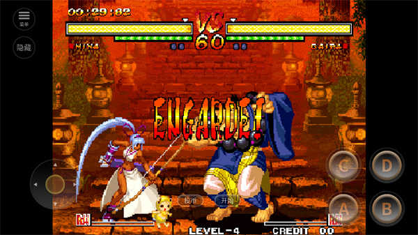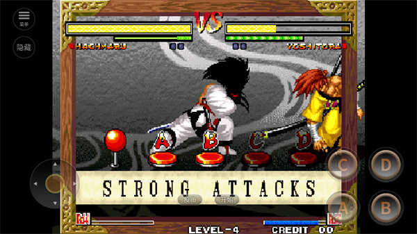 侍魂5手机版新追加的模式,发动条件是有怒时用D键“冥想”(冥想是在你被打加怒后,但又没怒满前,原地按住“D”来蓄)使体力计上方的冥想浮标到达体力值前方(也就是血比箭头处更低,空手也可以发动哦),但“冥想”动作需要消耗怒气值,条件符合后体力计转为蓝色,输入↓↙←+CD就可以发动“无之境地”。此时对手的动作大大变慢(浮空追击成为可能),并我方可使用“一闪”,使人可以洞悉对方的破绽进而一发逆转。和怒爆发一样,蓝色的计量槽随时间减少,结束后怒槽消失。由于怒爆发和无之境地都是每回对决只能使用一次的模式,且二者只能选用其一,所以要慎重考虑再使用。