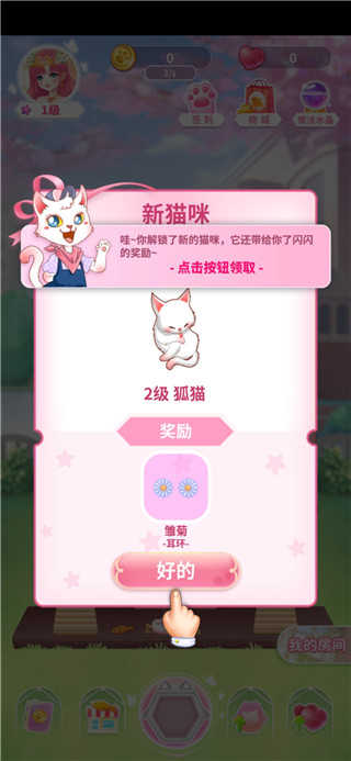 3、然后就可以解锁新的猫猫,解锁之后可以获得相对应的奖励;