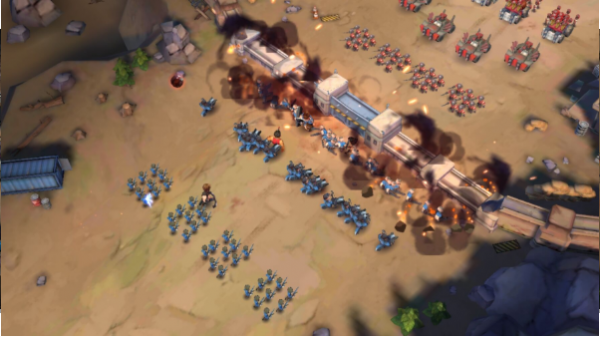 1、游戏场景画面很宏伟,采用的是上帝的视野,可以看到所有的小兵以及僵尸都整齐的排列在城墙的两侧,一场激战随时都有可能爆发,你不是一个观战者。