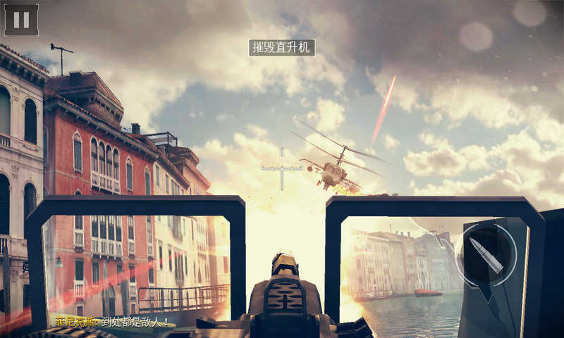 《现代战争5:晕眩风暴 Modern Combat 5: Blackout》是备受瞩目的一款射击大作,游戏拥有惊艳的画面效果和运行体验。游戏开始于意大利水城威尼斯,之后还将转战东京等全球多个城市。玩家扮演的反恐军官 Phoenix,将亲身涉险,与装备精良的恐怖分子展开殊死搏斗,防止大规模杀伤性武器危害世界。延续了该系列一贯的火爆风格,战斗场面和物损效果也更加逼真,由于场景的变化,威尼斯、东京等知名城市的设定也让本作的战场气氛较之于以往作品产生了明显的差异感,传统的战斗设施和高科技设备被美丽的风景和熙熙攘攘的游客所取代,对水的描绘也达到了极高的水准,堪称最“唯美”的 MC 作品。