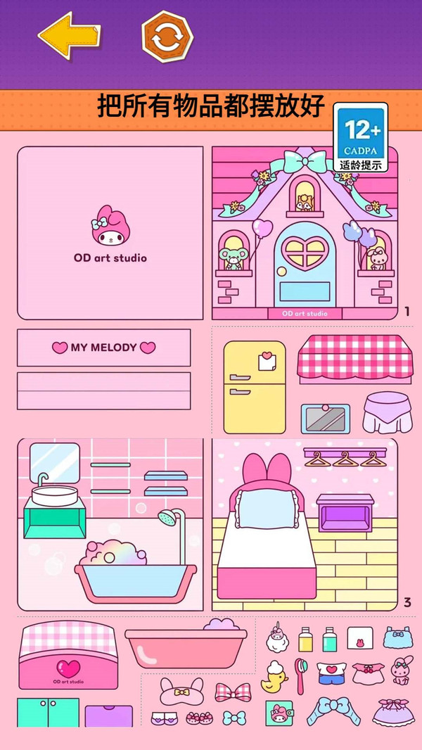 2、玩家要根据不同的题目进行操作,游戏里的玩法多样,在游戏里玩家还可以装扮库洛米的房间。