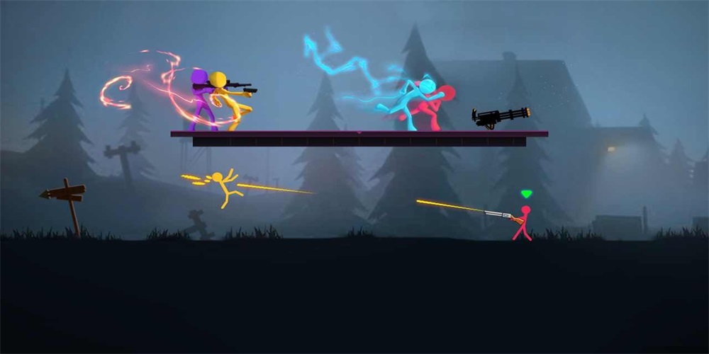 1、独特的火柴人风格,搭配绚丽的场景,让玩家身临其境感受到火柴人角色的强烈存在感。