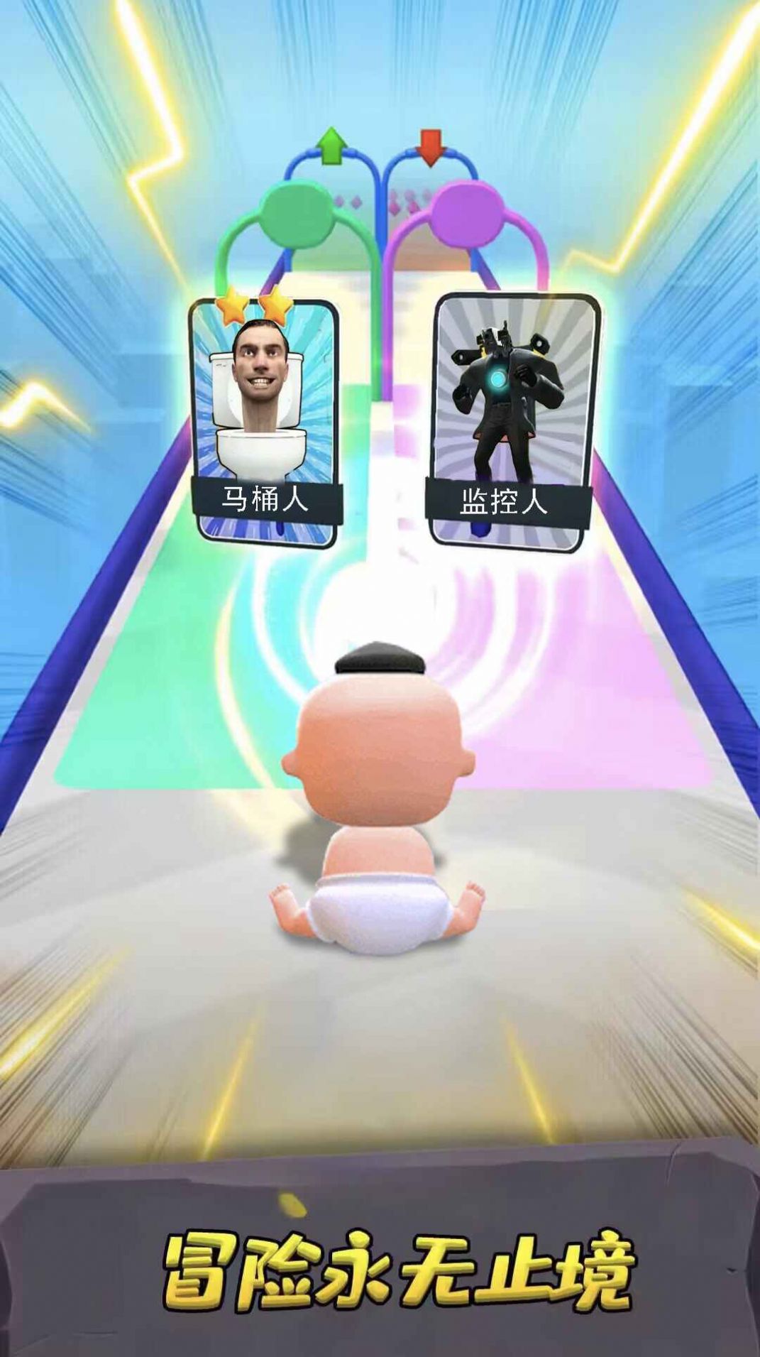公仔冲冲冲是一款非常好玩的手机趣味跑酷闯关游戏,这款游戏的玩法是需要玩家们在跑酷赛道中控制一个可爱的婴儿进行跑酷成长体验,在这里你需要在地图上快速的选择婴儿的进化路线,看是要成为天使一样的宝宝,还是成为可怕的捣蛋鬼,游戏的玩法非常的休闲趣味,值得玩家们下载体验。
