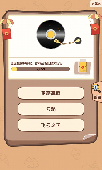 2.玩家可以在游戏中挑战不同的歌曲列表,并通过猜测歌曲的名字来获得红包奖励