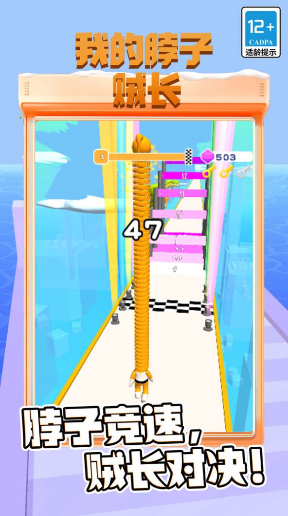 2、操控可爱的小人收集脖子长度并躲避各种障碍物,最终冲过终点;