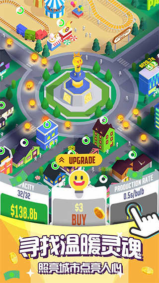 游戏中需要玩家解锁灯泡才能点亮城市,但必须用金币才能进行换取灯泡。