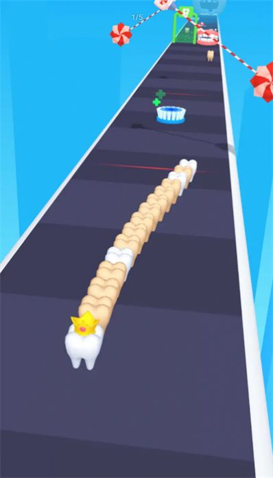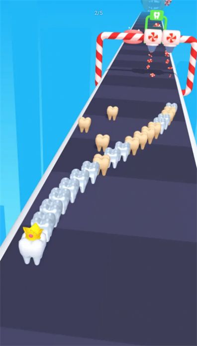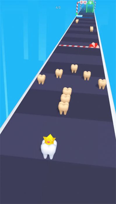 3、任务是操控一个牙齿,尽可能的收集其他牙齿和金币,闯过陷阱来完成目标;