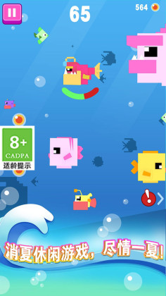 大鱼小鱼大作战是一款非常好玩的手机趣味海底大冒险游戏,这款游戏采用像素的丰富设计,更加突出了游戏的额趣味性,在这里你需要控制一只小鱼在海底当中进行冒险,玩家们所要做的就是躲避大鱼的攻击,顺利的吞噬小鱼进化,获得更高的游戏积分,游戏的玩法非常的休闲,一款趣味的海底冒险游戏等你体验。
