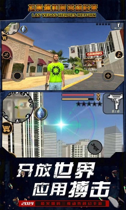 拉斯维加斯英雄归来是一款非常好玩的手机城市冒险游戏,这款游戏的玩法类似圣安地列斯,在这款游戏当中玩家们要扮演一名角色在城市当中进行自由的冒险挑战,获取游戏金币,在城市当中生活,在游戏中你能够购买车子房子,还能够谈一场恋爱,玩法非常的自由,还有更多的生活体验等你下载感受。