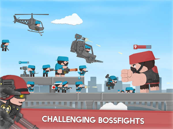 海量兵种,包括:手枪兵、大刀兵、炸药兵等等,每一种兵都的技能都是不一样的。
