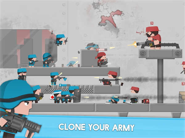 克隆军团是一款独具特色的射击游戏。玩家需要操控军团们斩杀对立的敌人,以1v1形式进行战斗。在这个过程中,玩家需要按照自己的策略去派出士兵进攻对方。每一种兵种都有不同的技能,玩家需要合理运用它们的优势来帮助自己赢得比赛。