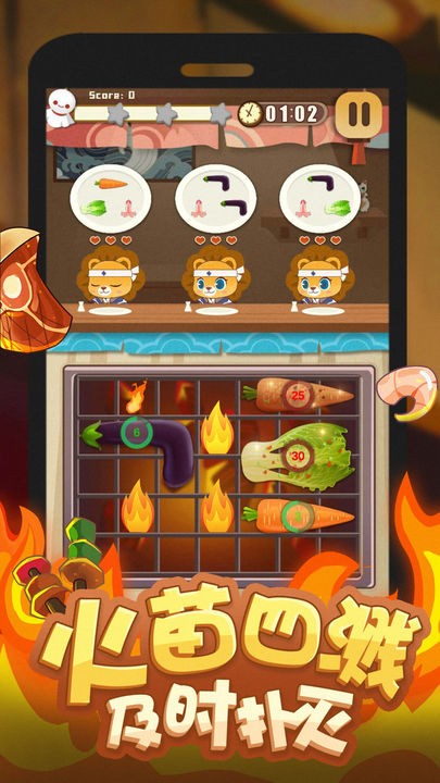1、玩家扮演一位烧烤大师,他将用超高的烧烤艺术制作美食;