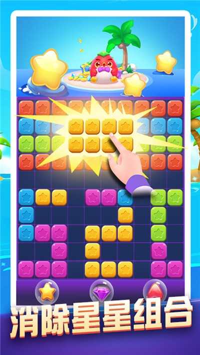 1、玩法简单,操作直接明了,相同颜色的星星方块可以消除得分