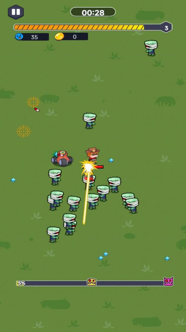 2、提供了升级能力和装备,你可以通过打击僵尸来获得点数,然后通过使用装备或重构技能点来提高人物属性;