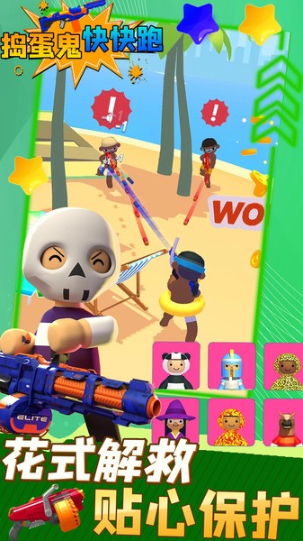 捣蛋鬼快快跑是一款非常好玩的手机射击闯关游戏,在这款游戏当中玩家们能够体验到最趣味的射击对战玩法,这款游戏的设计以欢乐游戏为主,超多可爱的卡通人物形象,趣味的射击枪械,每把游戏能够容纳20名玩家们同时在线进行设计对战,多样的地图等你前来体验,一款趣味的射击游戏,赶快下载感受吧。