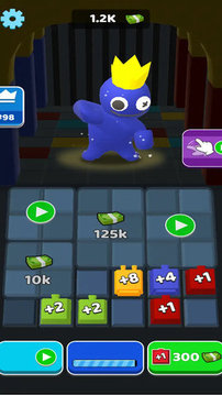1、每次玩家需要去触碰不同颜色的按钮,来生成屏幕顶部所显示的彩虹颜色,玩家能够获得相应大量的金币奖励和道具升级。
