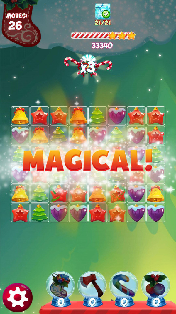 3、充满了节日的色彩,让整个游戏变得更有趣,画面越别致消除的乐趣也多。