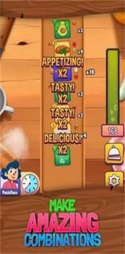 1、匹配消除:在游戏中,玩家需通过点击屏幕来消除相同类型的食物,消除的食物越多,得到的分数就越高。