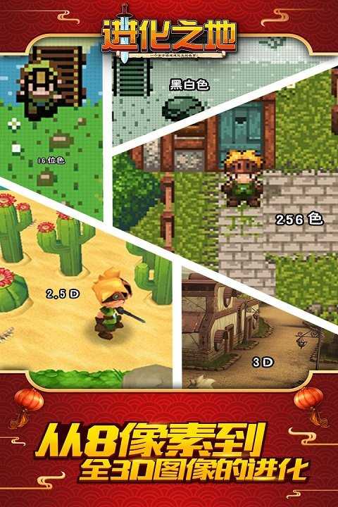 《进化之地》是一个以RPG方式来讲述游戏发展史的神作,致敬了塞尔达传说和最终幻想等经典作品,游戏以复古无声音的像素画开始,然后变成了256色,最后全3D。卷轴、迷宫、陷阱、卡牌、地下城、宝箱、女主、恶魔、飞船…游戏的元素越来越多,带我们重温二十几年来游戏进化史!20多年游戏的冒险之旅!向青春致敬!向经典致敬!