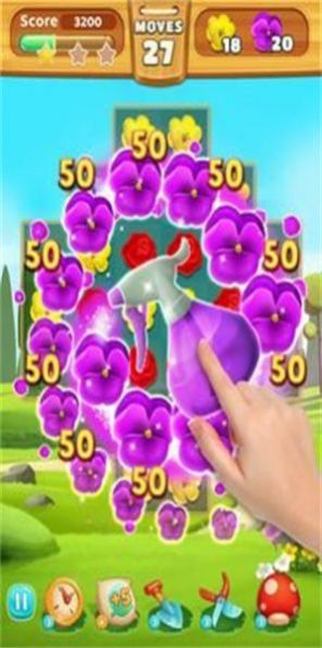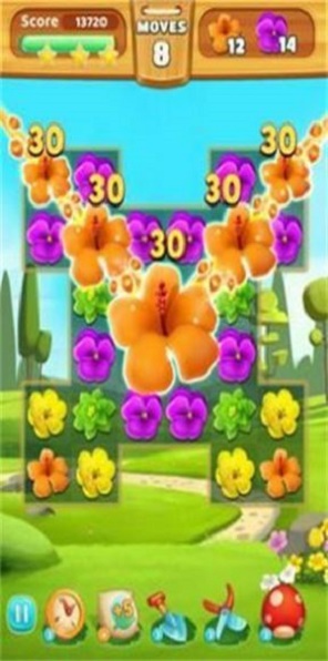 3、匹配三个或更多相同的花朵即可完成消除,获得相应的分数。