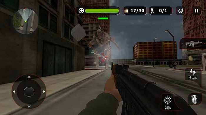 射击:玩家需要使用武器射击僵尸,阻止它们的进攻。