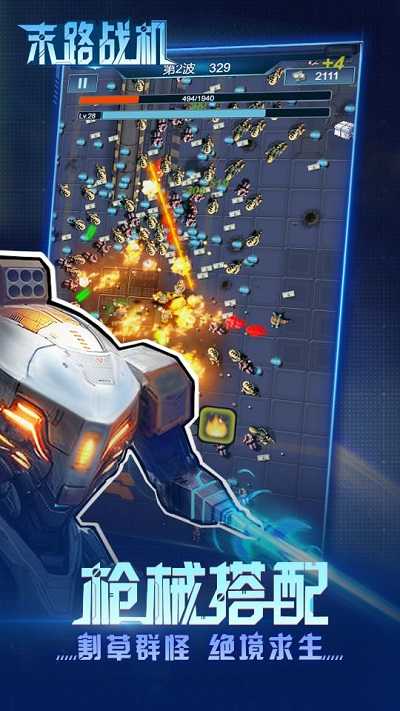 末路战机是款战机射击手游,游戏玩法精彩刺激,给你带来无限的射击快感。玩家可以自由搭配枪械,在击杀怪物的同时也在不断地吸收经验增加战斗的实力,游戏场景中有许多补给,强力武器,道具,技能等,越到后期越能感受到射击的魅力。