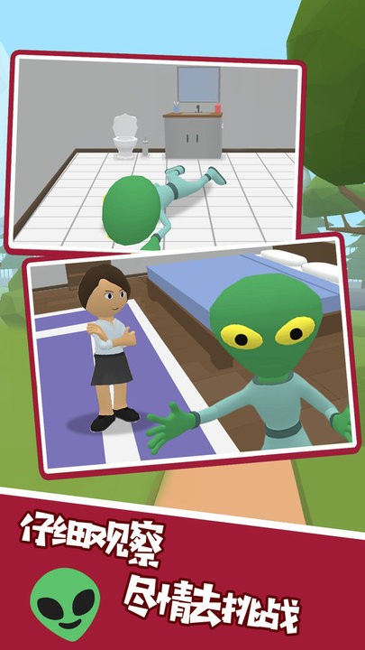 3、为了抓住他们,外星人会使用许多隐藏的方法,你必须仔细观察才能找到隐藏的外星人。这是对玩家耐心的考验。快来下载游戏,与外星人斗智斗勇吧。