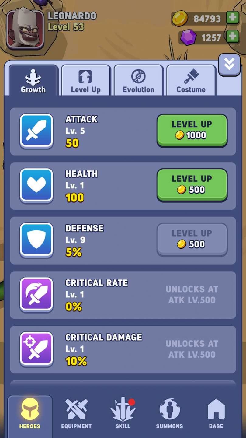 3、选择你喜欢的角色,并为他佩戴各种装备和武器,带来更多的策略性和变化;