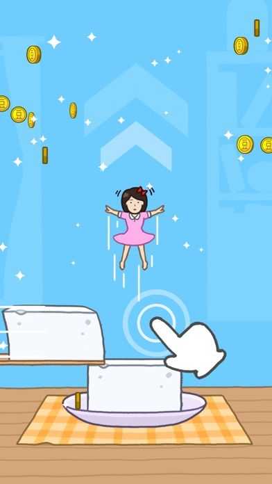 豆腐块儿数量越多,高度越高,获得的金币奖励也会更多,而且通关后还能解锁很多不一样的关卡,关卡难度是根据从简到难开始逐渐增加的。控制小女孩儿往上边的豆腐块儿上跳,跳到左右两边飞过来的豆腐块上,然后通过这样一种跳跃的方式获得高分。