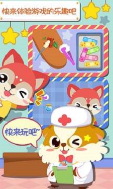 2.游戏中有各种可爱小动物,宝宝可以使用医疗工具进行治疗,体验成为真正医生的乐趣。