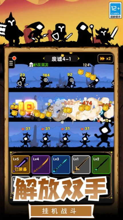 《暗黑骑士》是一款十分有趣的放置类挂机RPG闯关游戏,采用了经典的暗黑系风格设计,融合了多种玩法和多样化元素于一体,带你感受一场全新爽快的挂机类游戏的战斗快感。游戏中玩家需要招募很多的的士兵为自己而战,通过点击兵种将两个相同等级的兵种合成一个更高等级的骑士角色,从而获得更加强大的战斗力。快来带领着远征军团为帝国去征服所有位置的领地吧!