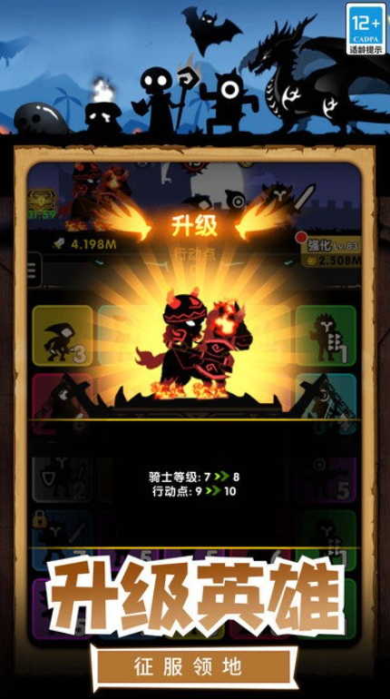 3、升级英雄,征服领地。
