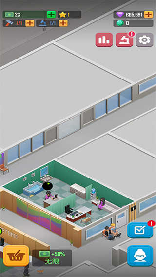 1、进入宠物大亨游戏以后,先升级办公室和管理员工,以便为顾客提供更好的服务。