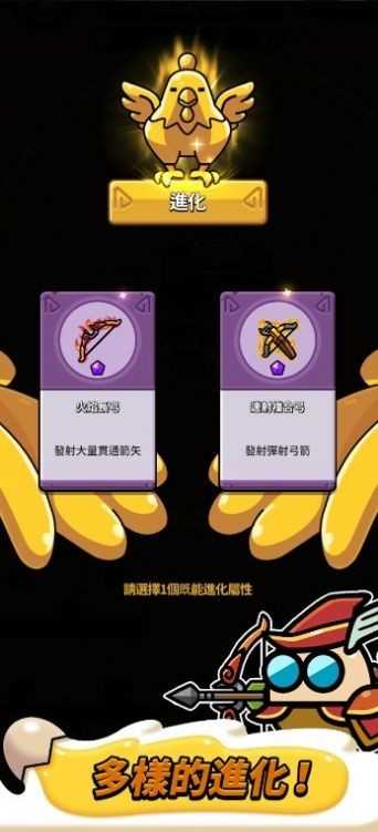 3、肉鸽元素的战斗玩法,随着等级的提升,每一次都可以选择进化随机属性