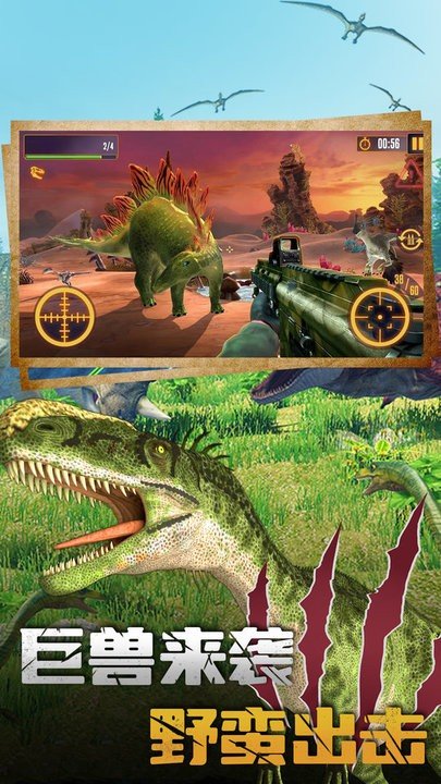 恐龙大逃亡2游戏是一款非常好玩的枪战射击模拟游戏去尝试的进行不同的战斗,是一款可以让许许多多的玩家们可以感受到极致魅力的动作闯关游戏,使用手中的猎枪来击溃更多的动物们,刺激紧张。