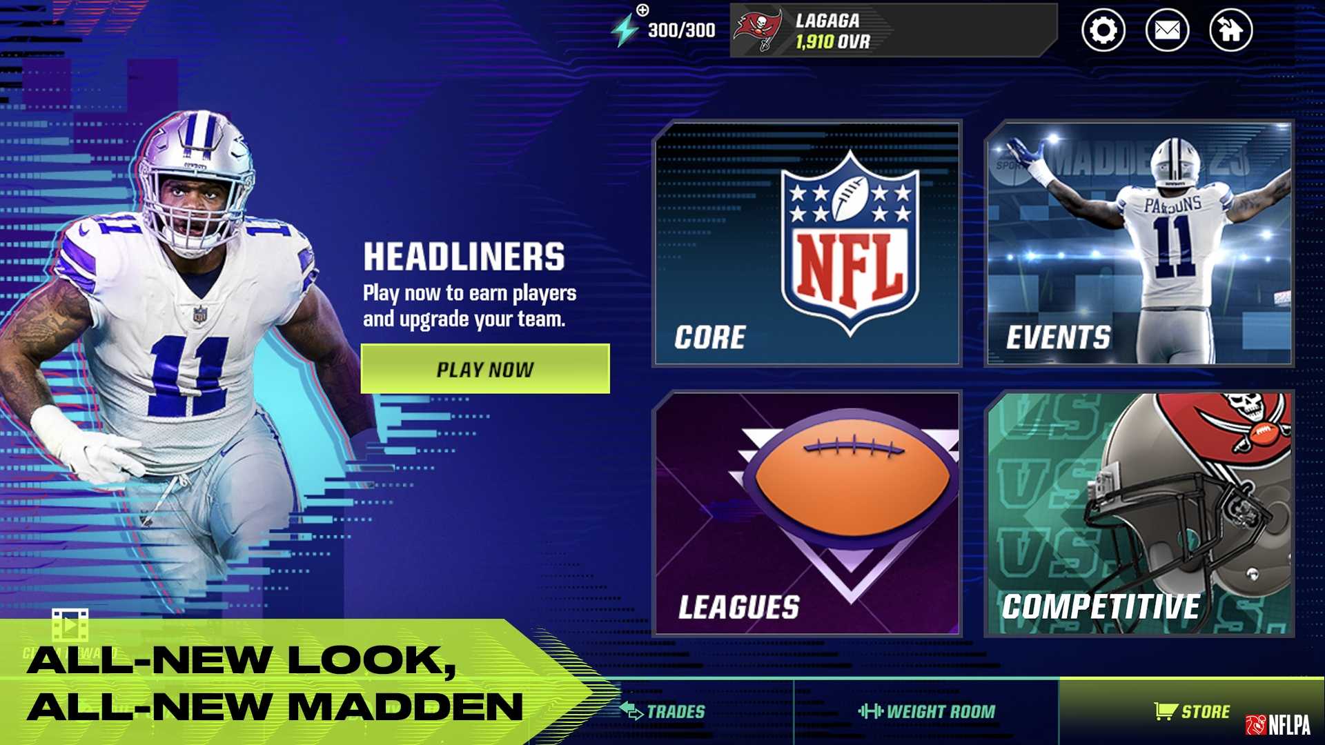 通过天气和灯光设置、Madden Console 的身体造型和 jumbotron 动画使移动足球栩栩如生