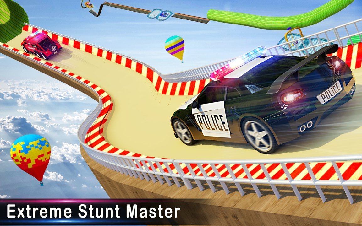 警察坡道汽车特技是一款赛车竞速类手机游戏这款游戏采用经典的3D高清画面引擎作为游戏背景,还有各种赛车玩家都可以解锁来进行驾驶体验,游戏中不仅有警车,玩家需要在天空上的赛道中奔驰,喜欢的话就来下载吧。