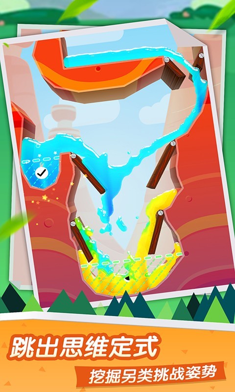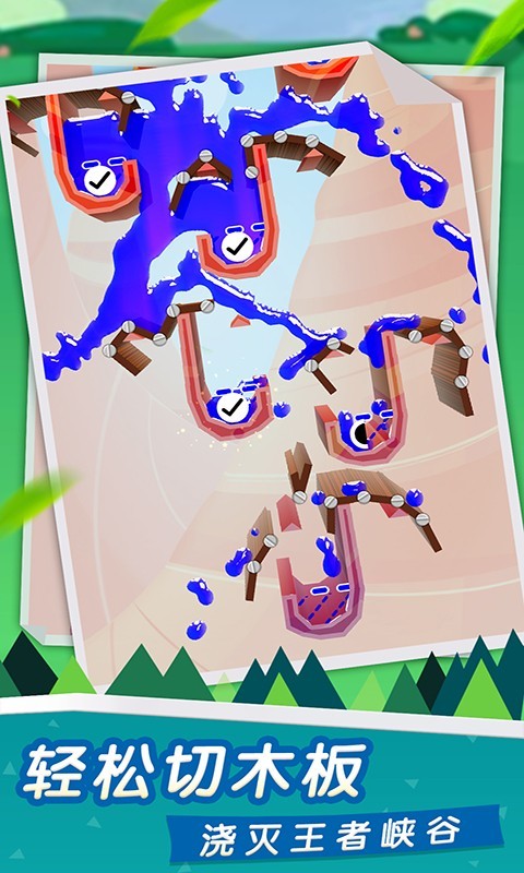 2、简单有趣的玩法,切木板并引导液体流向指定位置,轻松上手。