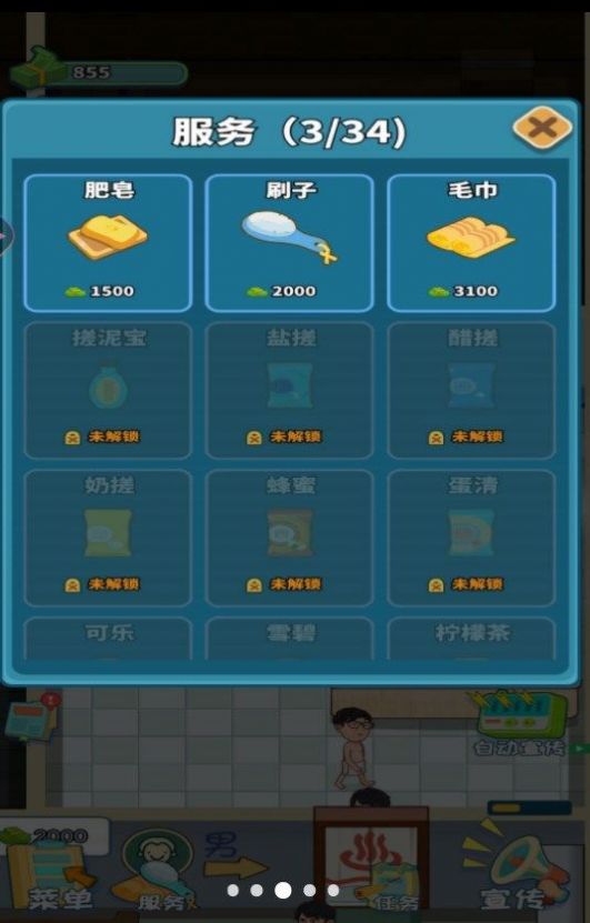 3、除了主线任务外,游戏还设置了众多的活动,如招募顾客的任务、打折促销的活动等,让体验到真实经营洗浴店的感觉;