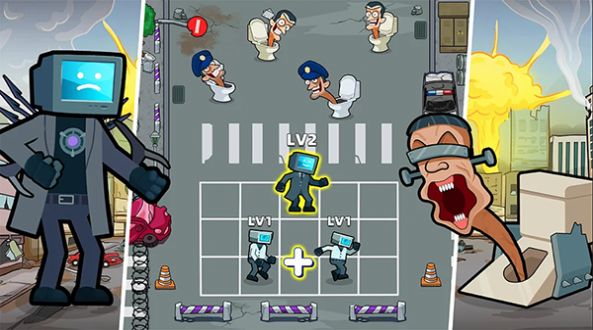 有马桶人和监控人两个独特的角色,玩家可以通过不断合并他们,变成更强大的形态。