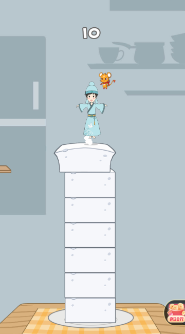 2、豆腐堆会不断地堆积,保证女孩的落地点始终处于稳定的位置,不断思考和技巧;