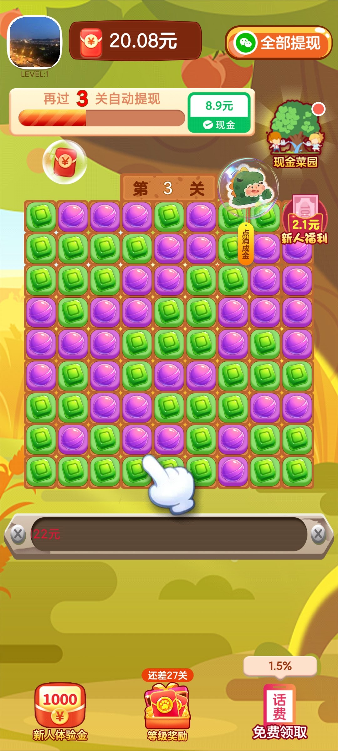消除我最菜是一款非常好玩的手机趣味消除游戏,这款游戏拥有众多的消除玩法,超多的趣味模式等你体验,游戏还拥有海量的关卡等你挑战,在这里你能够随时上线进行消除体验,各种解压的方块消除特效等你感受,游戏还拥有海量的趣味道具来帮你闯关,更多玩法赶快下载体验吧。