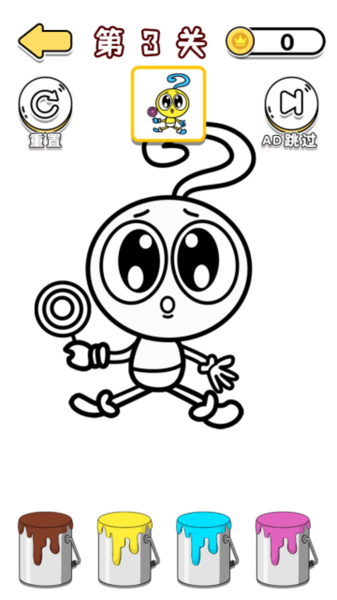 简略涂色:根据著作选取自己满足的色彩点击空白处即可上色